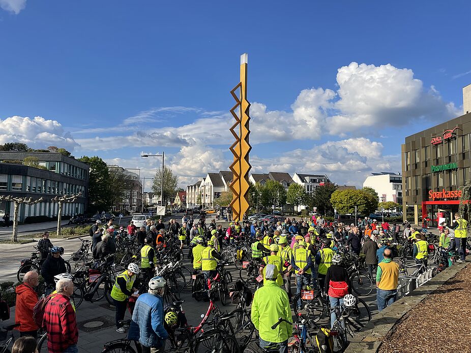 Volker Heidkamp, der die Tour leitete, machte abschließend noch auf die Tätigkeiten des ADFC (neben vielen Freizeitangeboten) in Sachen Radverkehr aufmerksam und wies auf die zahlreichen Möglichkeiten der Mitarbeit von engagierten Bürgern und Bürgerinnen hin. Er gab den Teilnehmern auch die Frage mit auf den Weg, wie alle die Verkehrswende umsetzen und ob unsere Wege zum Einkaufen, zu Kita oder Schule und zur Arbeit auch mit dem Rad zurückgelegt werden können.